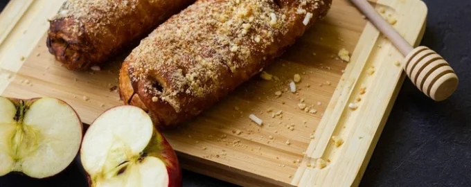 Το ρολό μέλι με μήλα είναι πολύ γρήγορο και εύκολο στην προετοιμασία, καθώς ψήνεται αμέσως με τη γέμιση και δεν χρειάζεστε καν μπλέντερ.