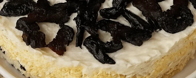 - Η ακολουθία των στρωμάτων: κοτόπουλο, δαμάσκηνα, τριμμένο αυγό, τριμμένο τυρί και η τελευταία πινελιά – δαμάσκηνα. Φροντίστε να αλείφετε κάθε στρώση με μαγιονέζα.