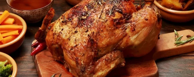 Για να το κάνετε αυτό, πρέπει να προετοιμάσετε το κοτόπουλο, να το αλείψετε με μπαχαρικά, να το αφήσετε να μαριναριστεί και στη συνέχεια να το ψήσετε στο φούρνο. Το κρέας βγαίνει ζουμερό με χρυσή κρούστα.